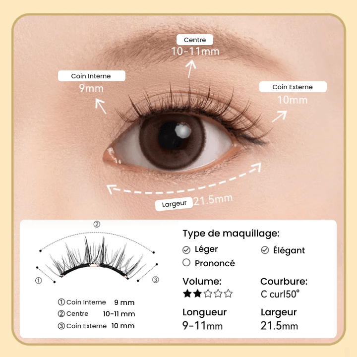 La durée du port dépend de l'état naturel de vos cils. Les bandes magnétiques des faux cils ont une force d'adhérence élevée, mais en raison de la sécrétion naturelle de sébum, un léger affaissement peut se produire.